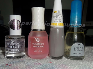 Não gostei muito deste 10 em 1 da essence como top coat, não dá aquele aspecto brilhante fabuloso então comecei a usar como base.